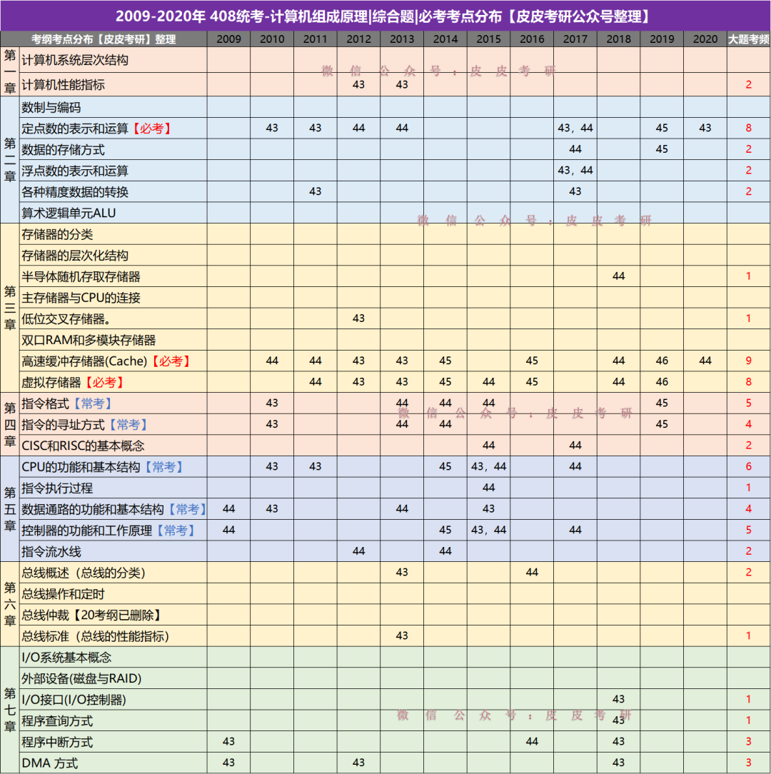 408统考计算机组成原理|综合题|历年必考考点分布