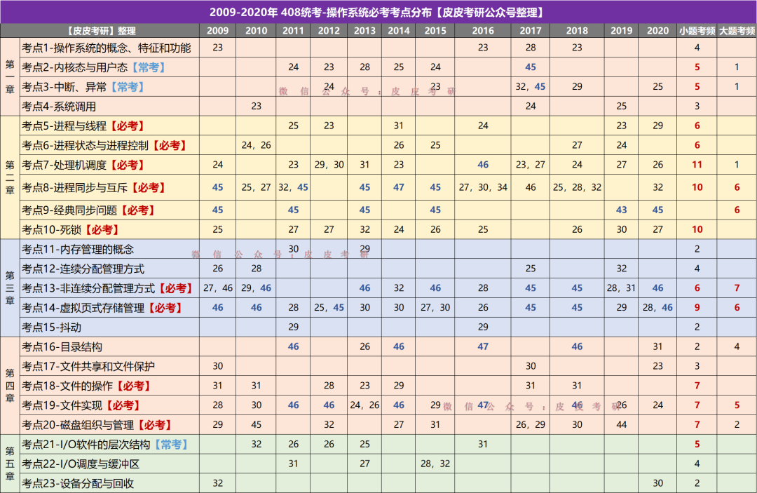 【2009-2020】408统考操作系统历年必考考点分布
