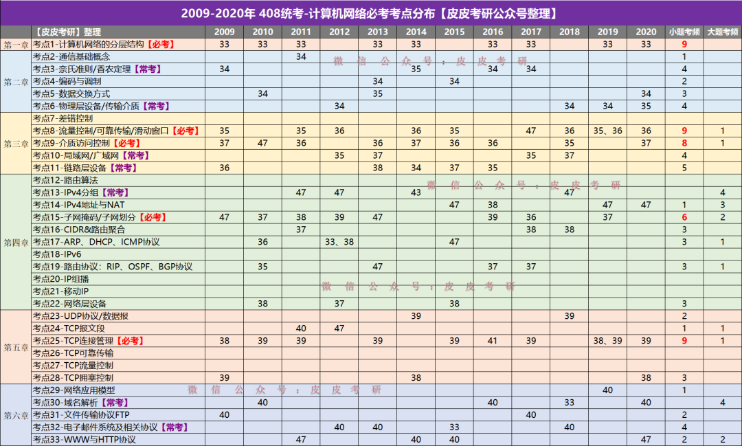 【2009-2020】408统考计算机网络历年必考考点分布