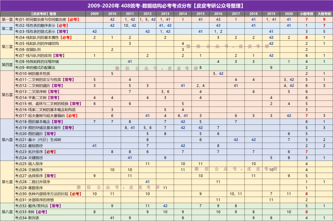 【2009-2020】408统考数据结构历年必考考点分布