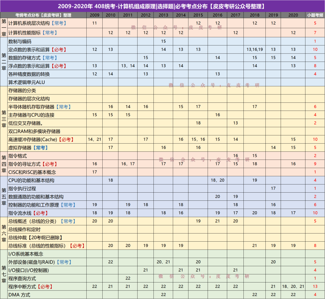 408统考计算机组成原理|选择题|历年必考考点分布